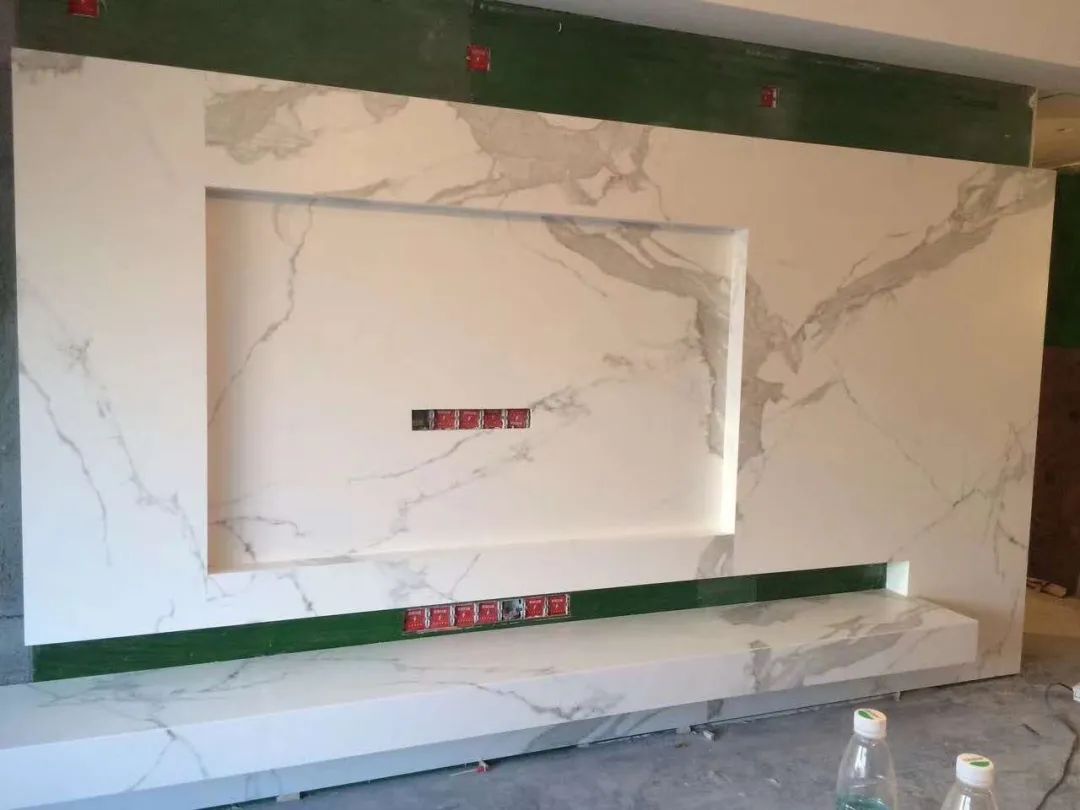同時,巖板因為大尺寸以及可以實現多板連紋,適合連續使用在較大空間及面積的裝飾。